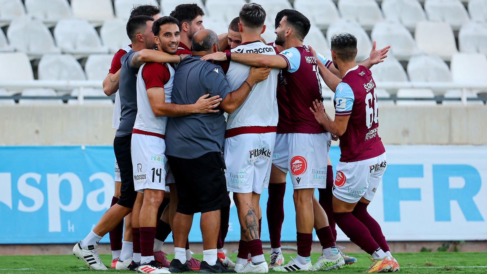 Οι «βυσσινί» είχαν τον έλεγχο του αγώνα στο «Τάσος Μάρκου». Προηγήθηκαν με γκολ του Δημήτρη Σολωμού στο 28’ και έφτασαν σε δεύτερο γκολ στο 55’ με τον Καζάν.