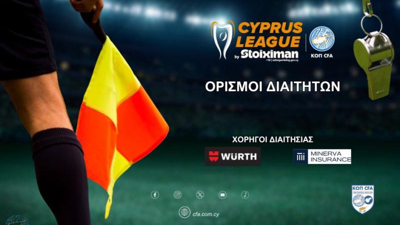Η Κυπριακή Ομοσπονδία Ποδοσφαίρου ανακοινώνει τους διαιτητές των αγώνων της προημιτελικής φάσης του Κυπέλλου Coca – Cola Α’, Β’ Κατηγορίας που θα γίνουν την Τετάρτη 4 Φεβρουαρίου καθώς και του εξ΄ αναβολής αγώνα της 15ης αγωνιστικής της Cyprus League by Stoiximan μεταξύ της Πάφος F.C. και του ΑΠΟΕΛ.