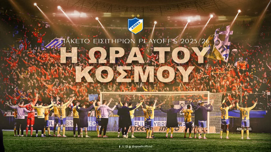 Το μήνυμα είναι λιτό και ξεκάθαρο. Όσοι δεν έχουν ήδη εξασφαλίσει διαρκείας ας προχωρήσουν στην απόκτηση του πακέτου εισιτηρίων για τους 5 αγώνες των Playoffs. Κάθε σπίτι ΑΠΟΕΛιστα, ας αποκτήσει το δικό του. Η ανάγκη της παρουσίας σας, στο γήπεδο είναι καθοριστική.